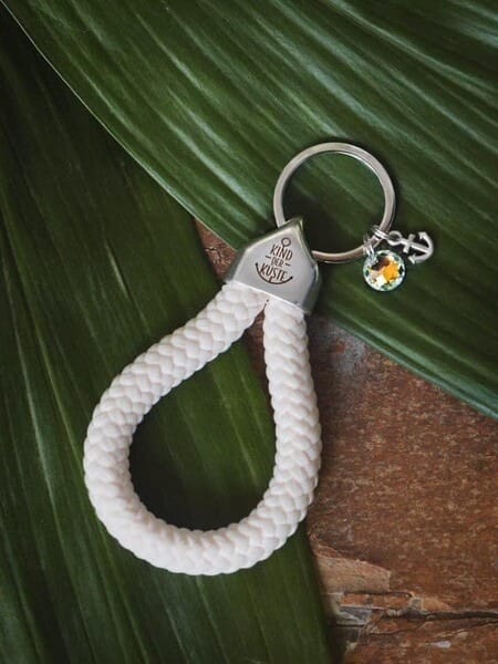 Maritimer Ankerglücksherz Anhänger „Lichter(Meer)“ mit weißem Segelseil, Regenbogenkristall, gravierter Endkappe und kleinem Anker – fröhlicher Blickfang für Schlüssel oder Tasche.