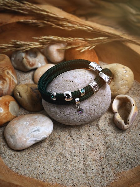 Das Ankerglücksherz-Armband Dünengrün vereint natürliche Eleganz mit maritimem Charme. Es besteht aus dunkelgrünem Segelseil, einem funkelnden dunkelgrünen Kristall und einem stabilen Ankerverschluss – ein stilvoller Glücksbringer für jeden Tag. Stillt Deine Sehnsucht, das Meer und den Sand zu spüren.